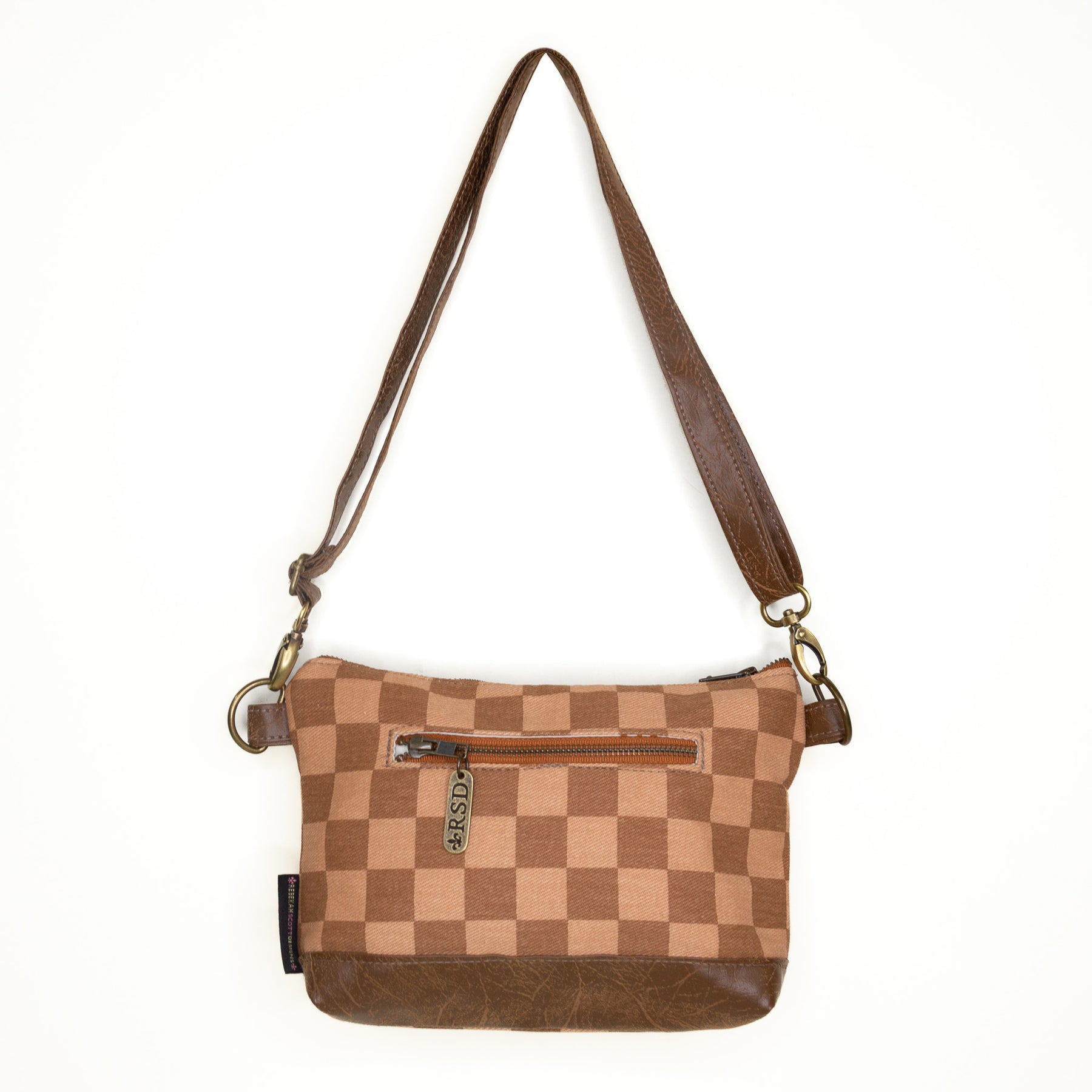 • Faux leather base, adjustable/removable skinny crossbody strap, and details