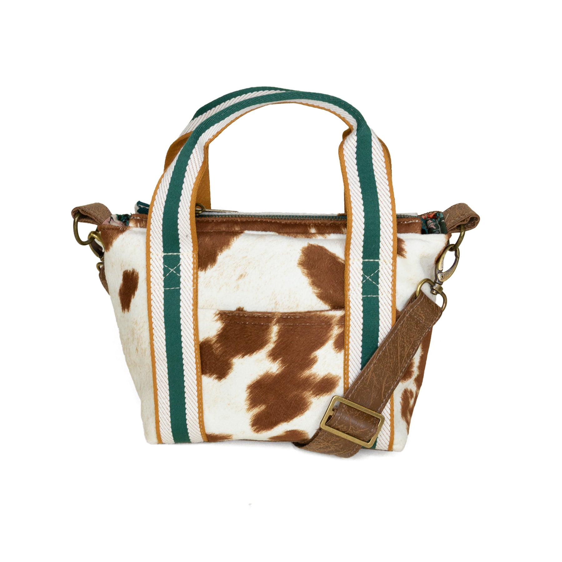 • faux leather base and adjustable crossbody strap