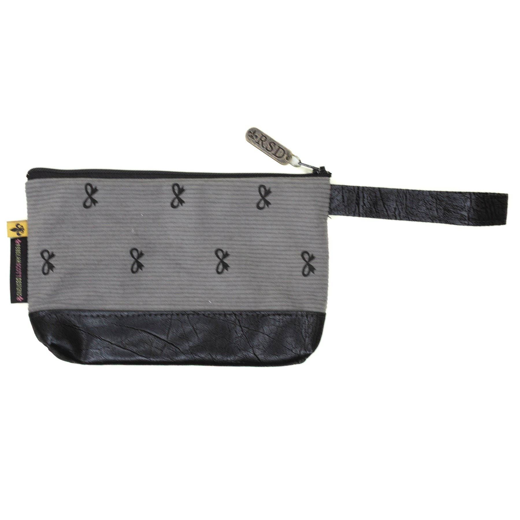 • faux leather base and wristlet handle