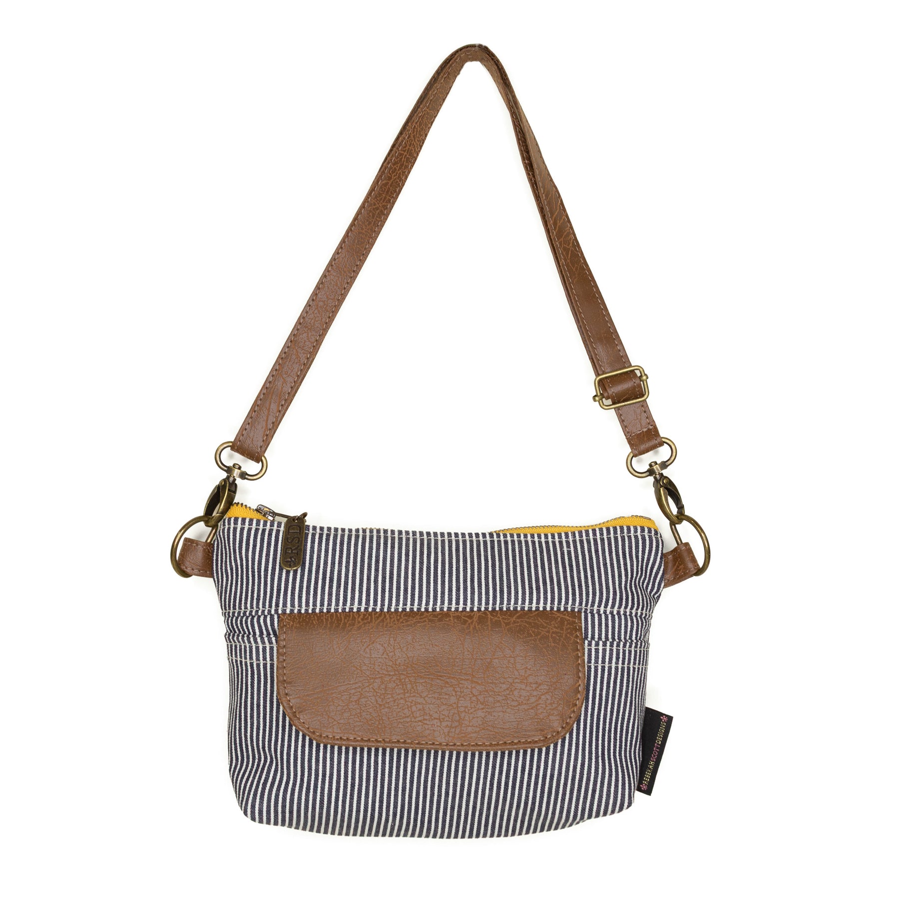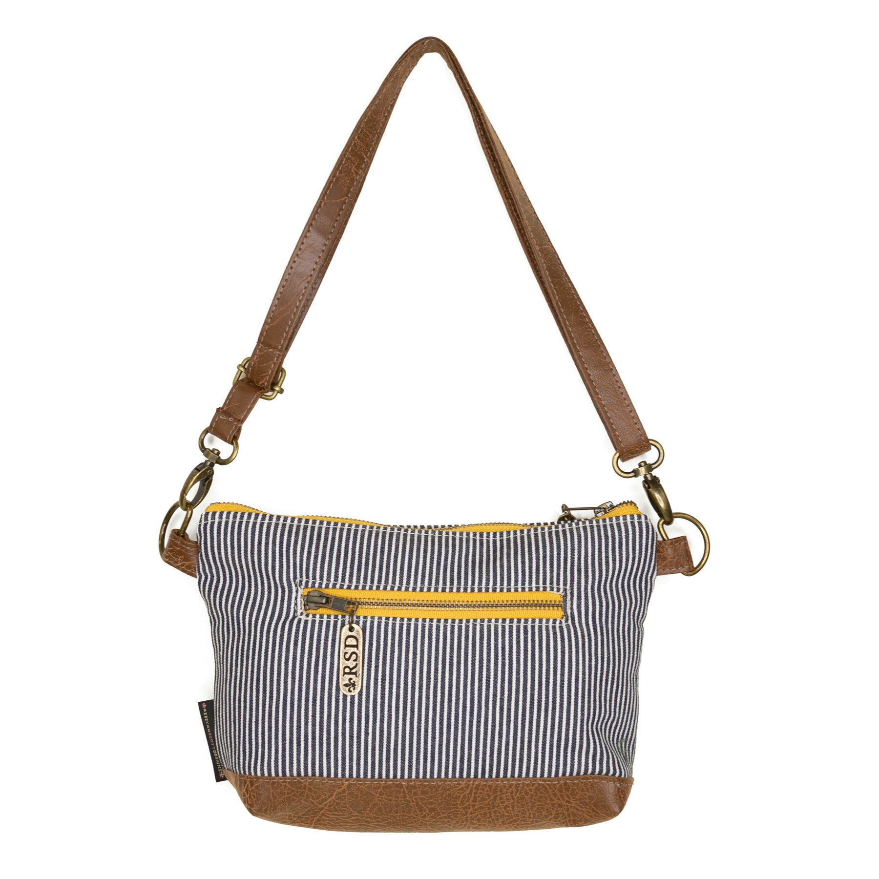 She's beautiful! My favorite colors of navy blue and yellow! She is so quick and convenient to throw over my shoulder and not have to fumble with hanging on to a bag. She is lightweight and the fabric makes me happy!