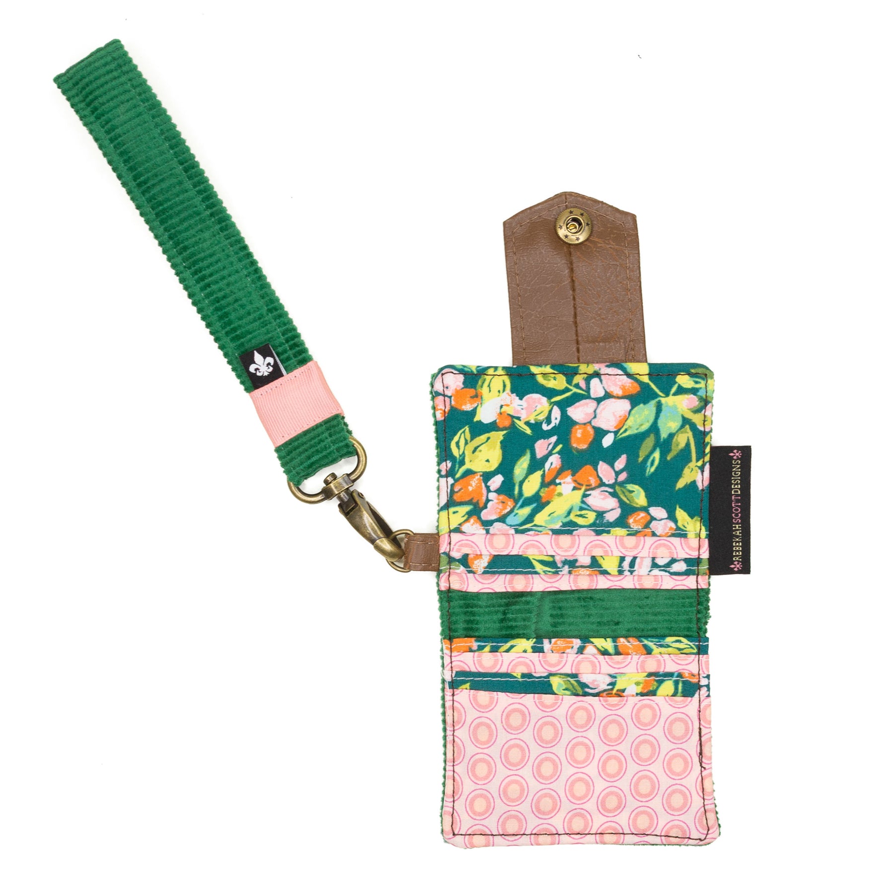 • D-ring feature with matching Key Fob for a wristlet style