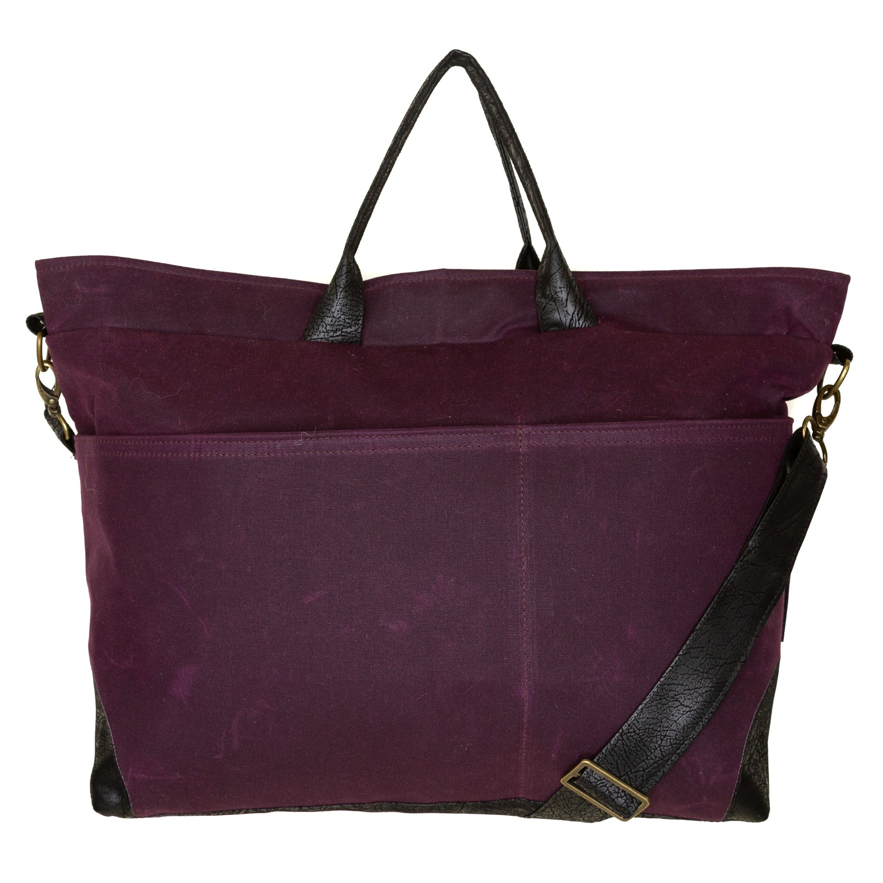 - faux leather base, briefcase handles, adjustable crossbody strap, and optional crossbody strap pad