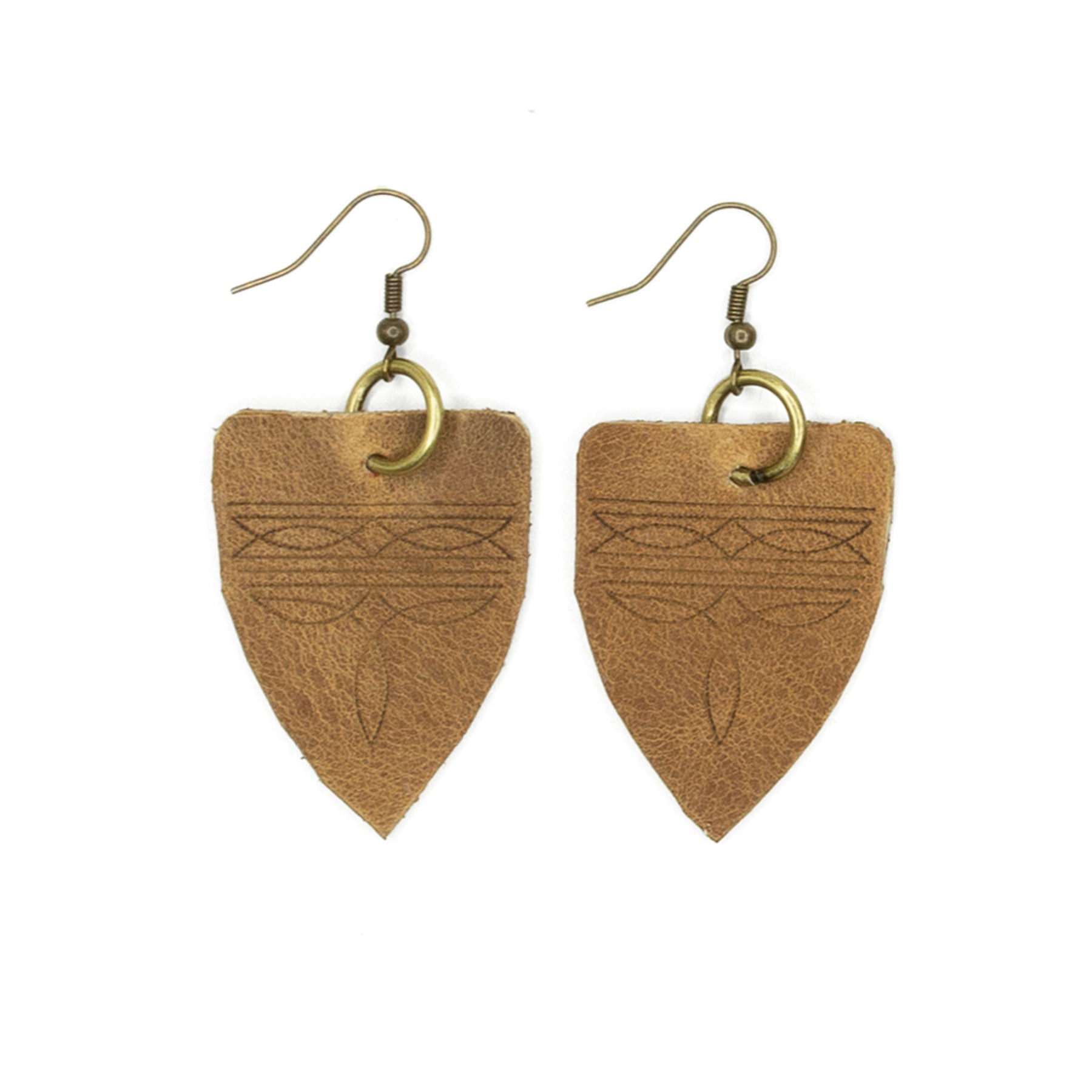 Regular priceTake your style to a new level with our handcrafted earrings! Made with a fashionable lasered boot stitching detail and antique brass hardware for a subtle look, these lightweight earrings are perfect for any outfit.